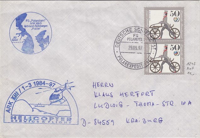 Deutsche Schiffspost Stempel auf Brief Polarexpedition Gröhnland Spitzbergen F.S.Polarstern