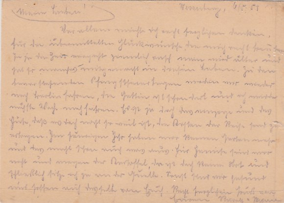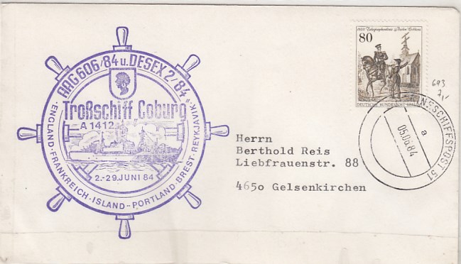 Deutsche Schiffspost Stempel auf Brief Troßschiff Coburg nach Gelsenkirchen