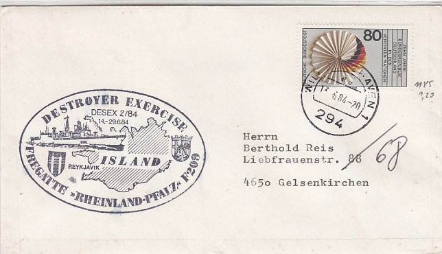 Deutsche Bundesmarine Stempel auf Brief Destroyer Exercise nahc Gelsenkirchen