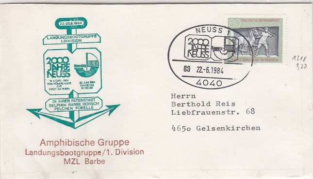 Deutsche Bundesmarine Stempel auf Brief Amphibische Gruppe MZL Barbe Neuss Gelsenkirchen