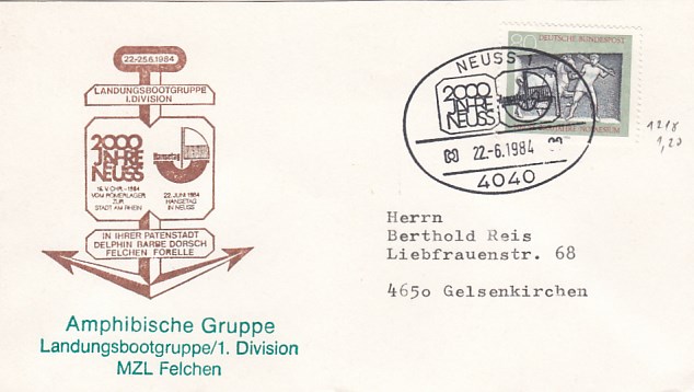 Deutsche Bundesmarine Stempel auf Brief Amphibische Gruppe MZL Felchen Neuss Gelsenkirchen