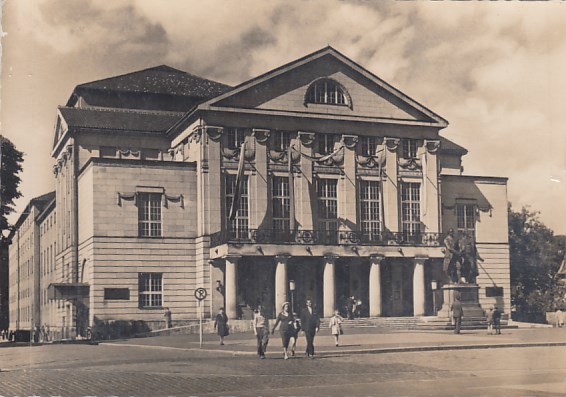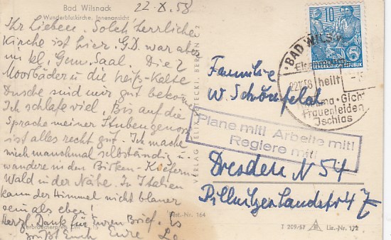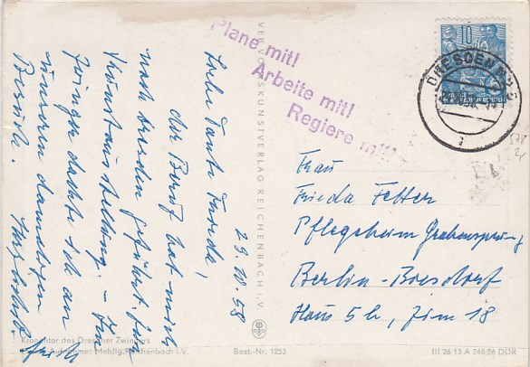 Anlaß Stempel DDR Politik auf AK Dresden Plane Arbeite Regiere mit