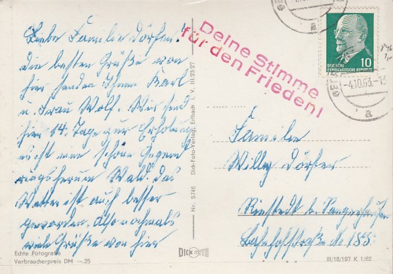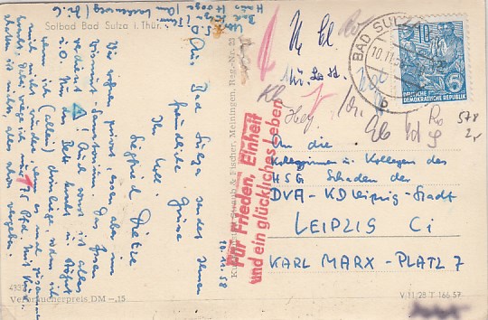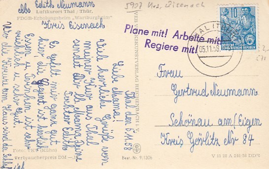 Anlaß Stempel DDR Politik auf Thal Thüringen Plane Arbeite Regiere mit