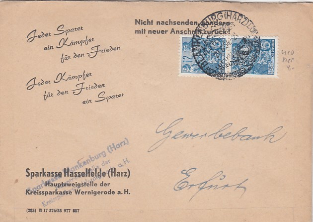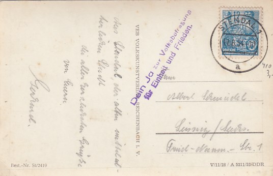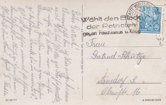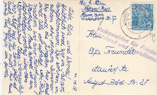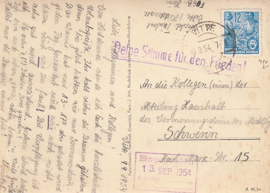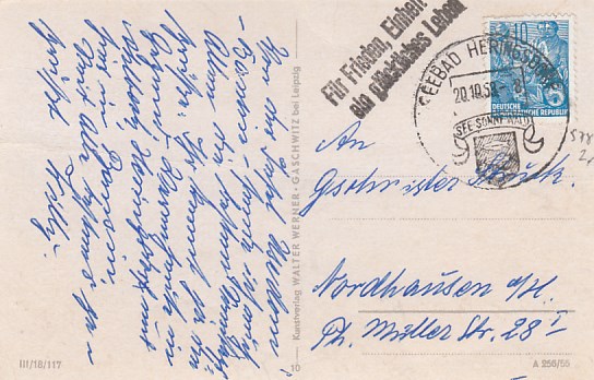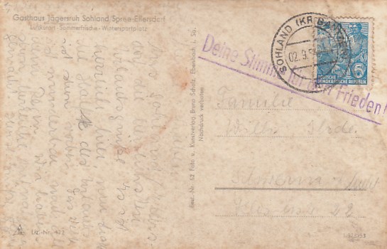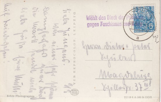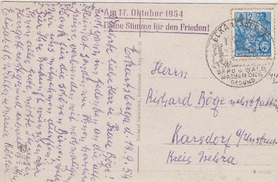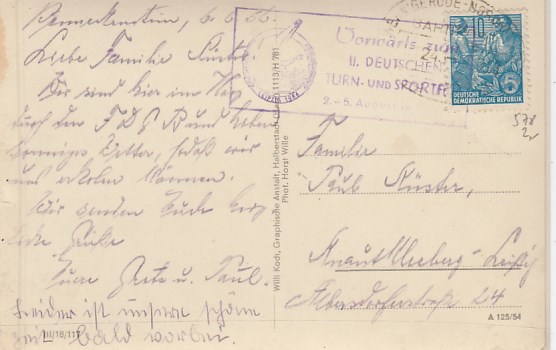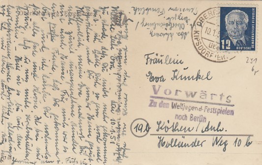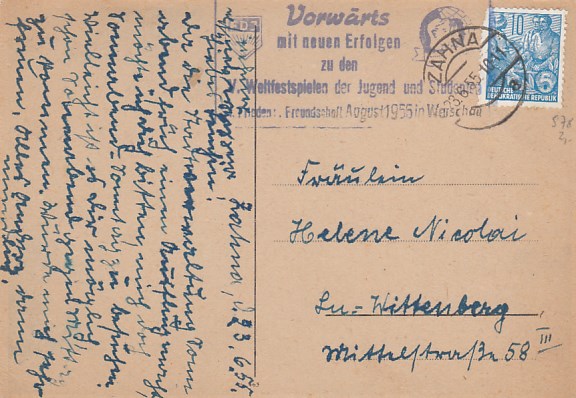 Anlaß Stempel DDR Politik FDJ Vorwärts Weltfestspiele Jugend Zahna 1955