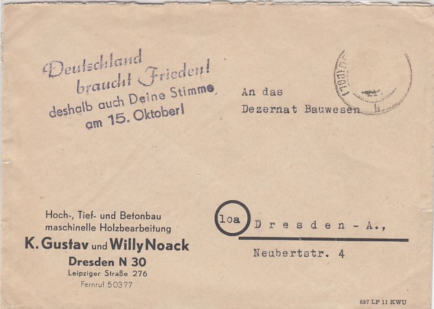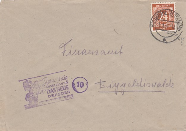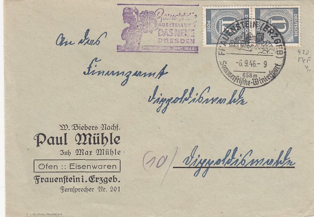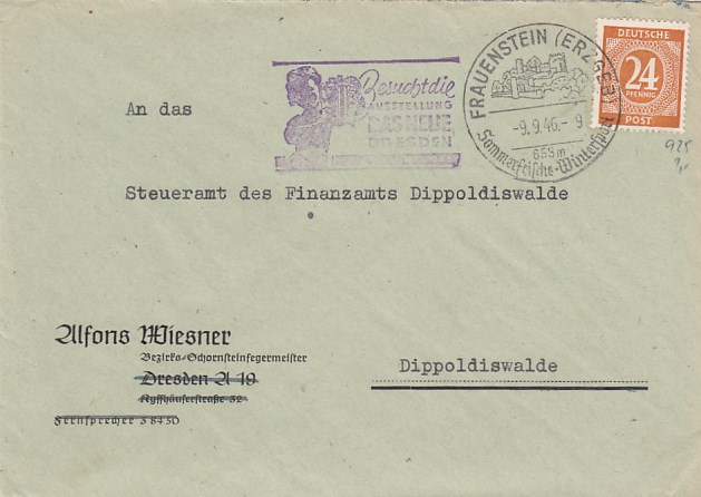 Anlaß Stempel DDR auf Brief Frauenstein Dresden Ausstellung 1946