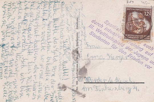 Anlaß Stempel DDR Politik auf AK Schwarzburg Sportler Weltfestspiele Jugend 1951