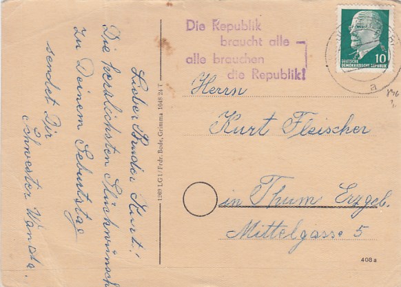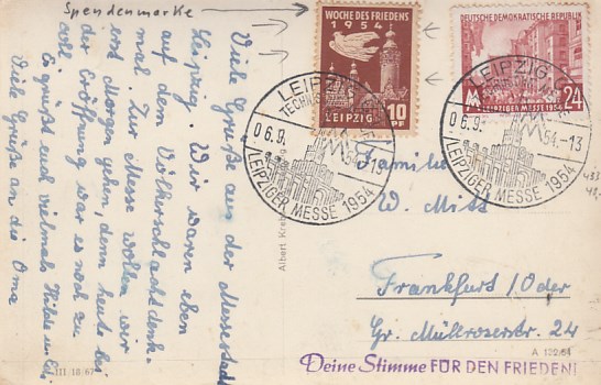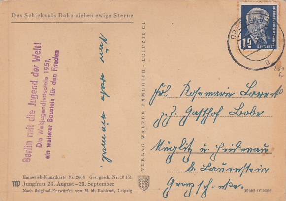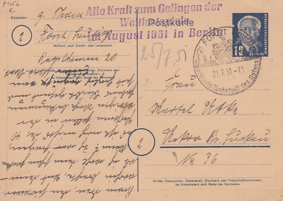 Anlaß Stempel DDR Politik Weltfestspiele 1951 Berlin Forst