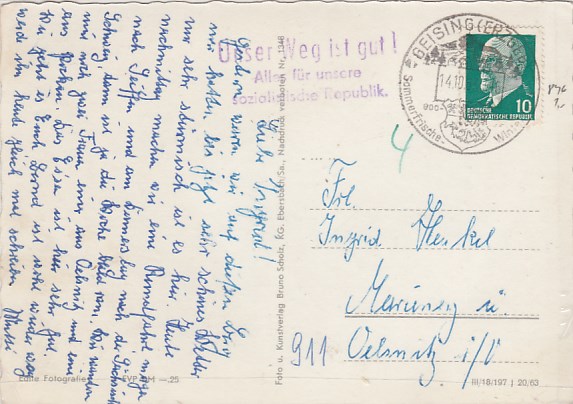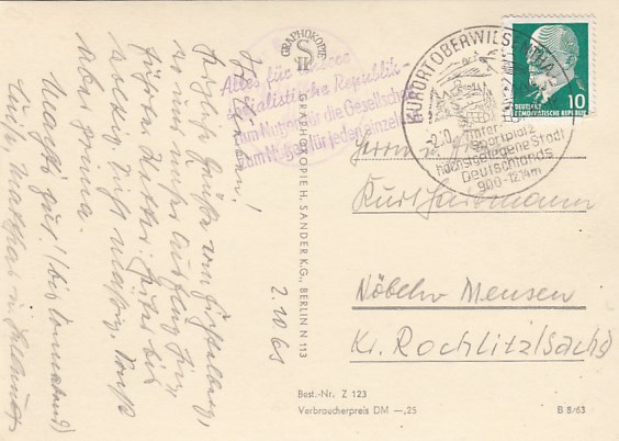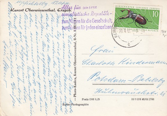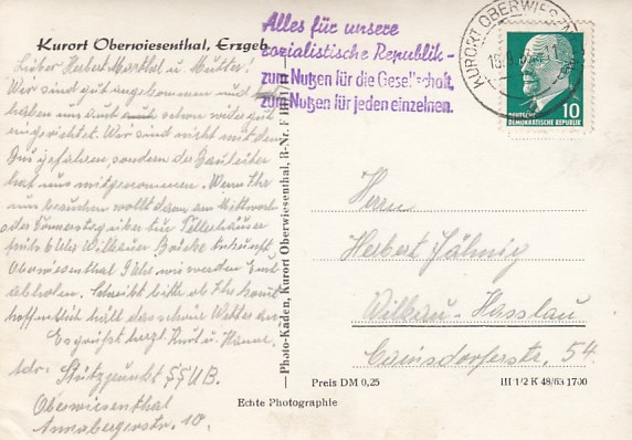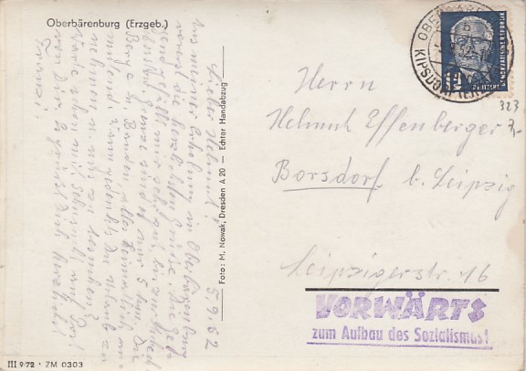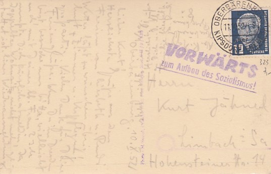 Anlaß Stempel DDR Politik auf AK Oberbärenburg Vorwärts zum Aufbau des Sozialismus