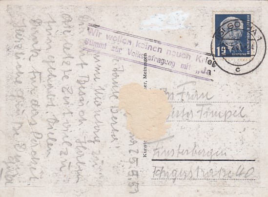Anlaß Stempel DDR Politik auf AK Gotha Stimmt zur Volksbefragung 1951