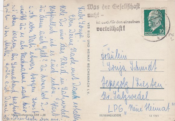 Anlaß Stempel DDR Zeitung für dich Frauen Brief VEB Altstoffhandel Cottbus