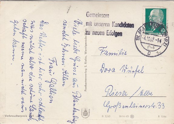 Anlaß Stempel DDR Politik auf AK Rathen Wählt den Block der Patrioten