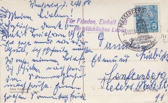Anlaß Stempel DDR Politik auf AK Oberbärenburg Vorwärts Weltfestspiele Berlin