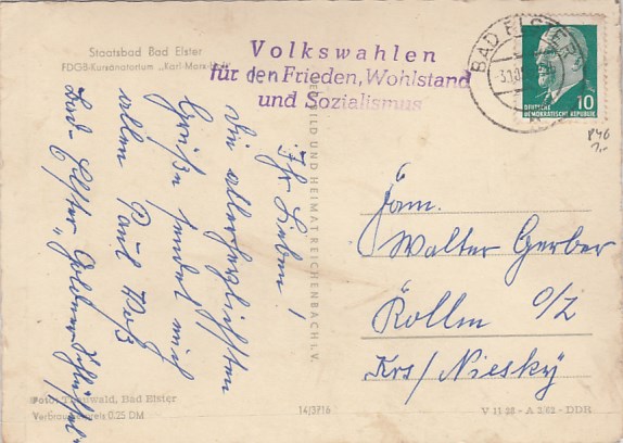 Anlaß Stempel DDR Politik auf AK Bad Elster Volkswahl Frieden Wohlstand