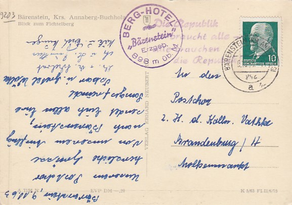 Anlaß Stempel DDR Politik auf AK Bärenstein Die Republik braucht alle
