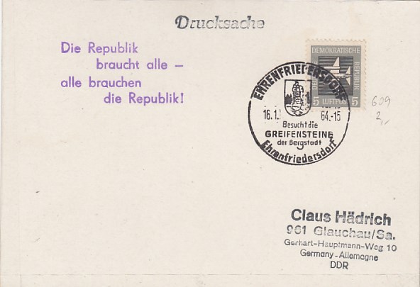 Anlaß Stempel DDR Politik auf Ehrenfriedersdorf Die Republik braucht alle