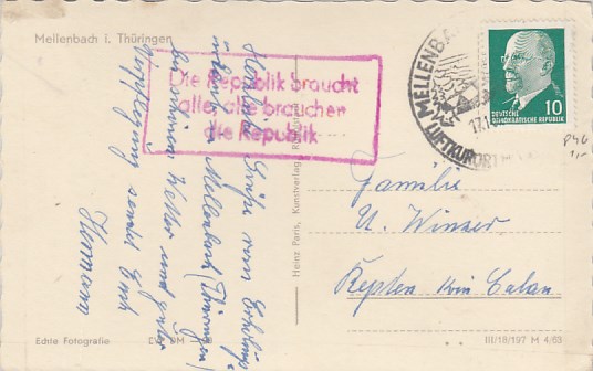 Anlaß Stempel DDR Politik auf AK Mellenbach Die Republik braucht alle