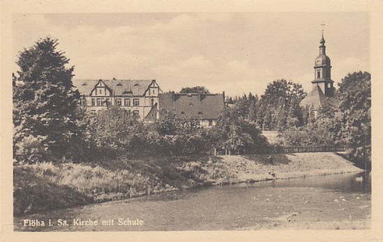 Flöha im Erzgebirge in Sachsen Kirche und Schule 1953