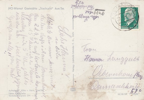 Aue im Erzgebirge Gaststätte Wismut Stadtcafe Wein Diele 1959