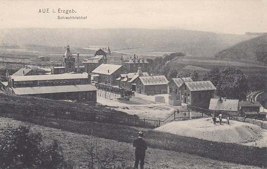 Aue im Erzgebirge Schlachthof mit Bahnhof Eisenbahn ca 1910