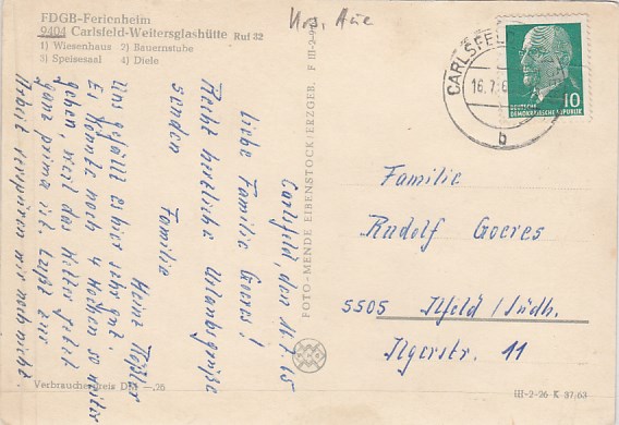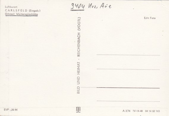Carlsfeld im Erzgebirge in Sachsen OT Weitersglashütte 1976