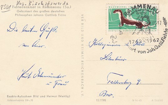 Rammenau Fichtedenkmal Gottlieb Fichte 1960