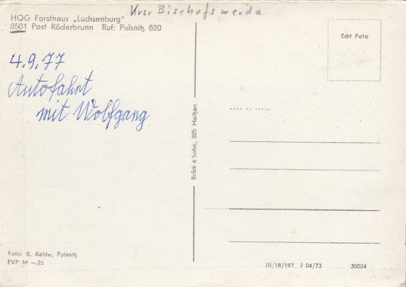 Gaststätte Forsthaus Luchsenburg Röderbrunn bei Pulsnitz 1973