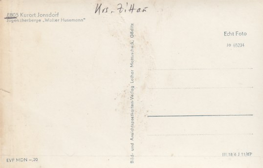 Kurort Jonsdorf in Sachsen Jugendherberge 1967
