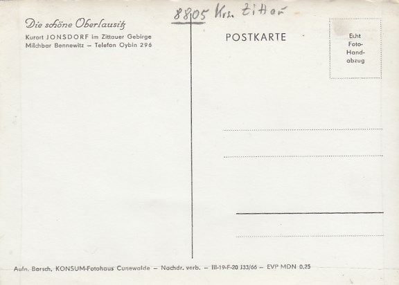 Kurort Jonsdorf in Sachsen Milchbar Bennewitz 1966