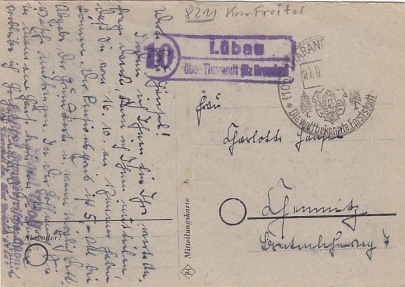 Lübau über Tharandt Gasthof mit Landpoststempel