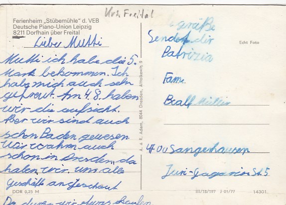 Dorfhain über Freital Sachsen Ferienheim Piano-Union Leipzig 1977