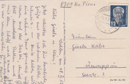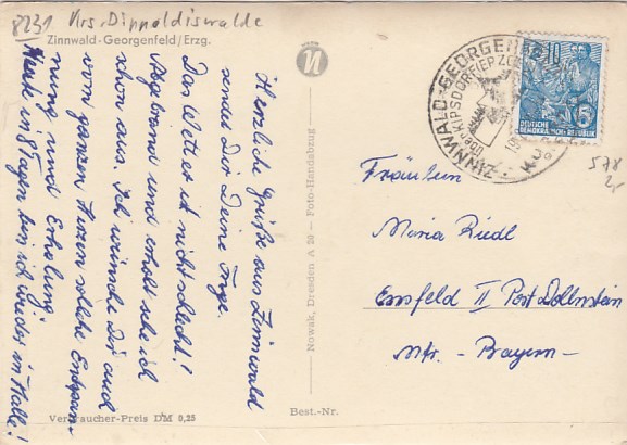 Naundorf über Königstein mit Landpoststempel Kreis Pirna an der Elbe
