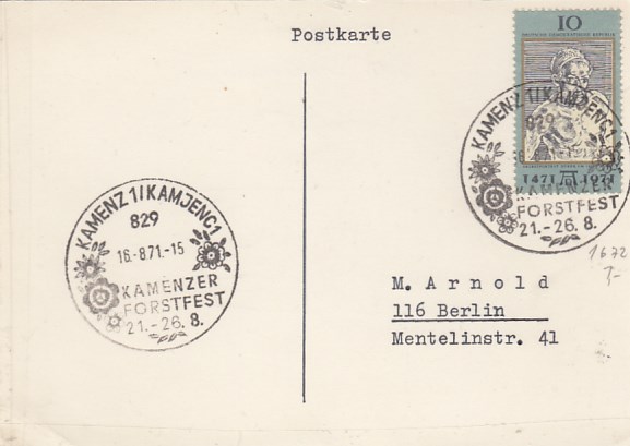 Kamenz in Sachsen Kamjenci Anlaß Stempel Forstfest 1971