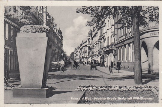 Pirna an der Elbe Friedrich-Engels-Straße mit VVN-Ehrenmal 1957