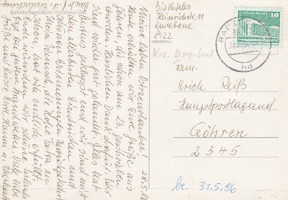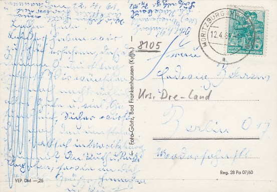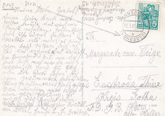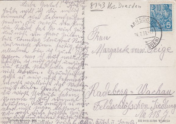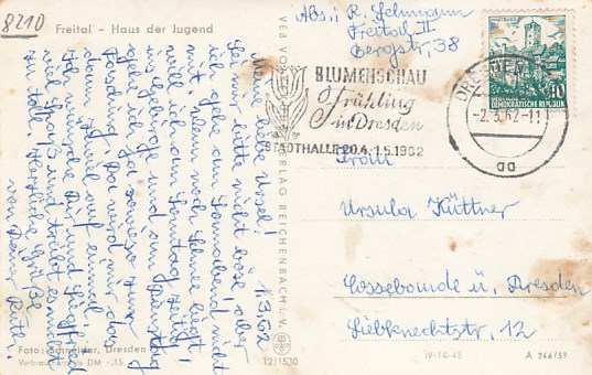 Rabenauer Grund Landpoststempel Spechtritz Kreis Freital in Sachsen 1960