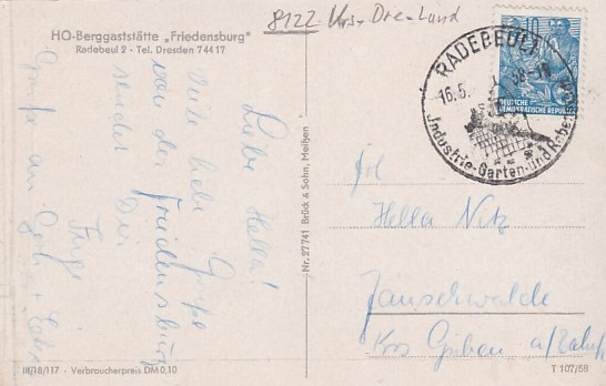 Radebeul Sachsen Berggaststätte Friedensburg 1958