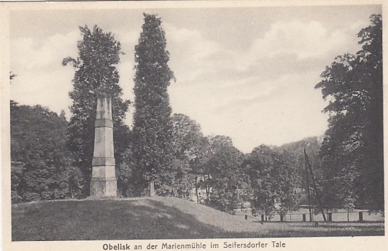 Marienmühle im Seifersdorfer Tale bei Radeberg Obelisk an der Marienmühle ca 1930