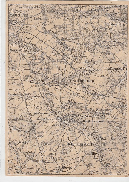 Görlitz Hermsdorf Schönbrunn Schönberg Bellmannsdorf Lichtenberg AK als Landkarte ca 1940