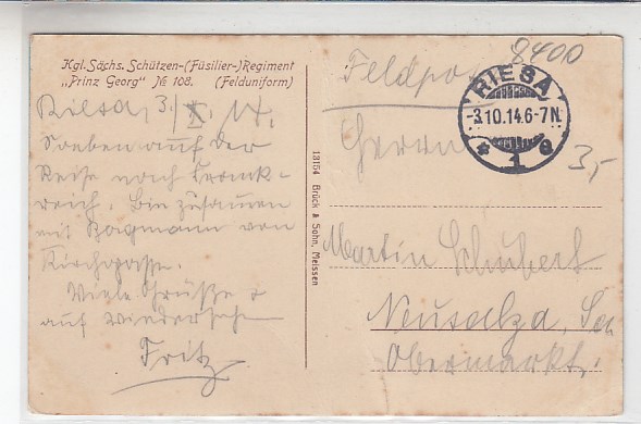 Riesa an der Elbe Schützen Füsilier-Regiment No.108 von 1914