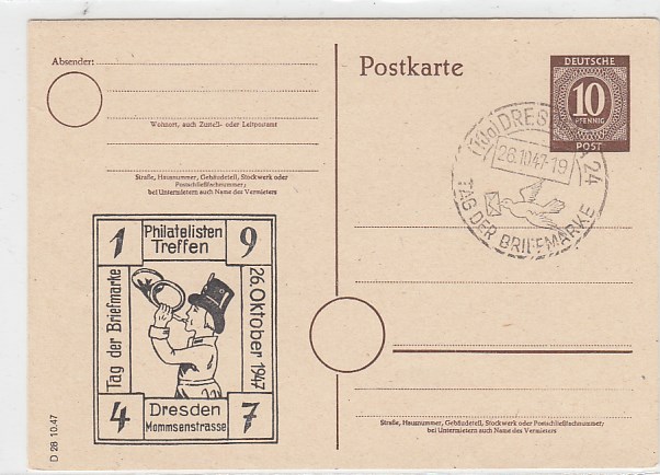 Dresden Postkarte mit Sonderstempel Philatelisten Treffen 1947