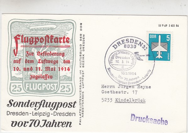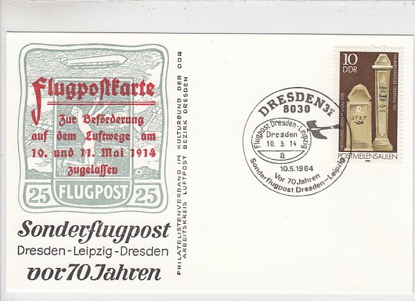 Dresden Postkarte Anlaß mit Sonderstempel Flugpostkarte 1984