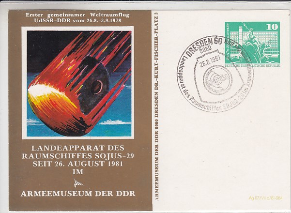 Dresden Postkarte Anlaß mit Sonderstempel Raumfahrt 1981