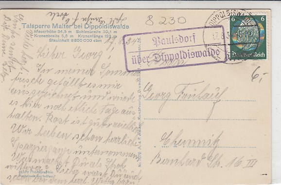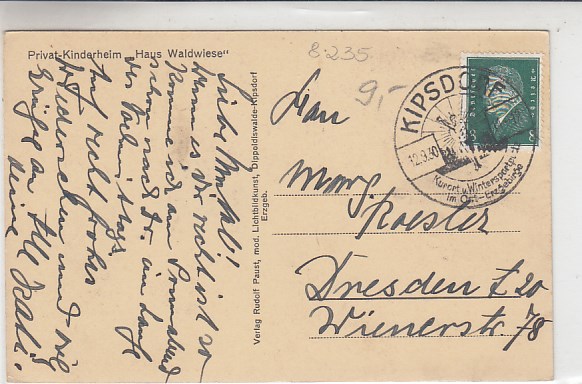 Waldbärenburg Stempel Kipsdorf 1943 Erzgebirge