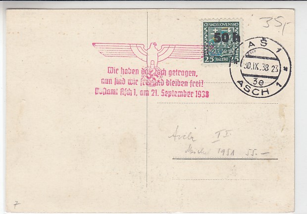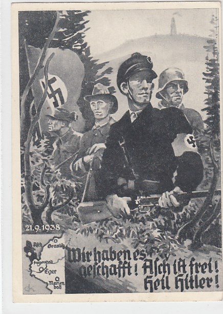 Propaganda Stempel Asch CSSR , Sonderstempel Wir haben es geschaft 1938