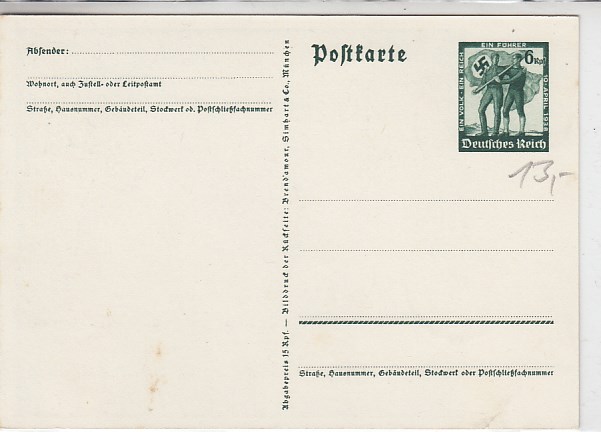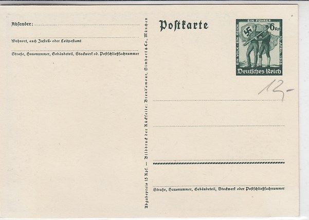 Propaganda 1938 Ein Volk Ein Reich Ein Führer , Ganzsache