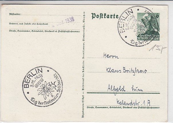 Propaganda Wir Danken unserem Führer 1938 Ganzsache Sonderstempel