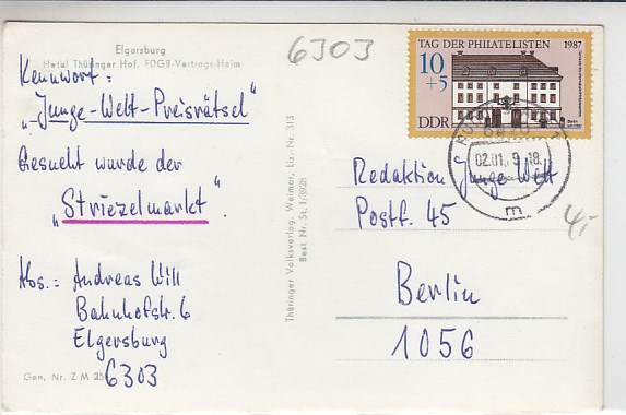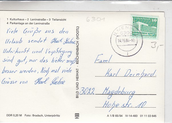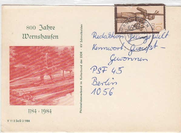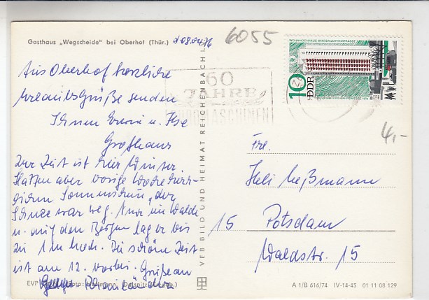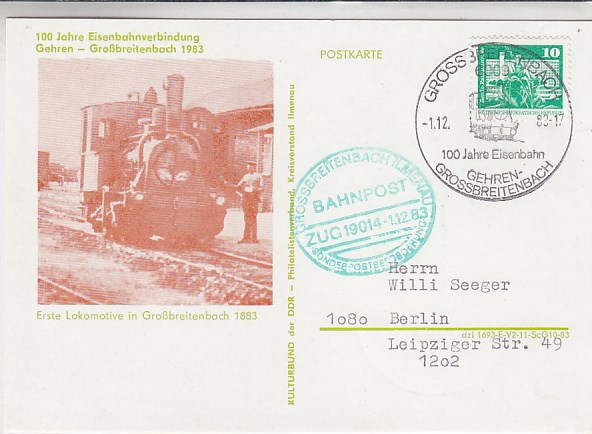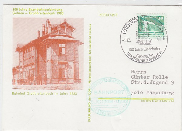 Gehren - Großbreitenbach Thüringen Eisenbahn Bahnhof Postkarte Bahnpoststempel 1983