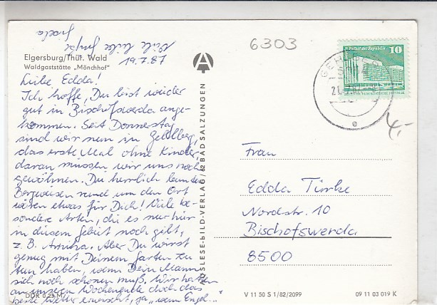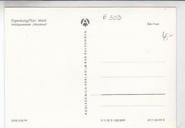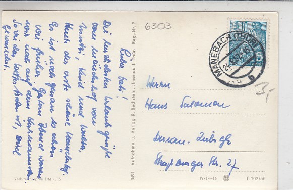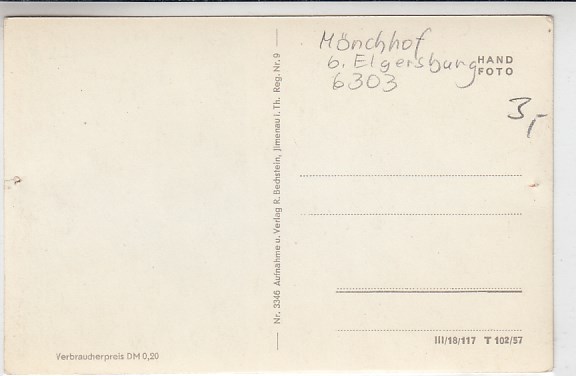 Elgersburg Thüringen Der Mönchhof Stempel Manebach 1957