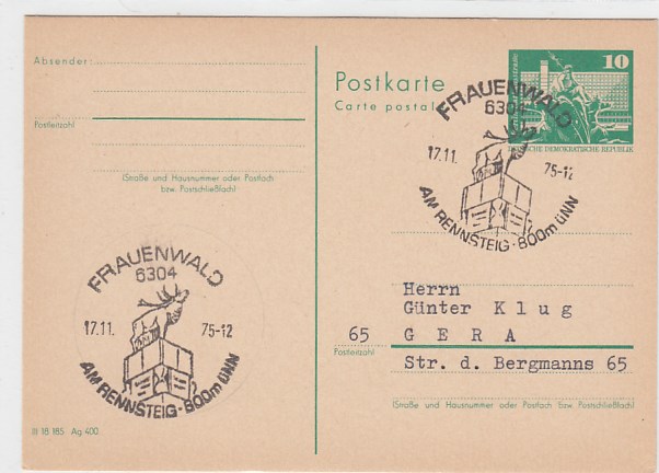 Frauenwald am Rennsteig Postkarte mit Sonderstempel 1975