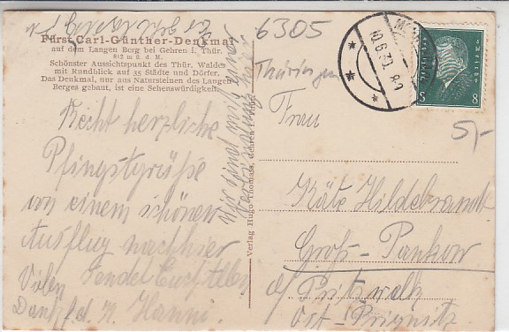 Carl Günther Denkmal auf dem Langen Berg bei Gehren Thüringen 1930