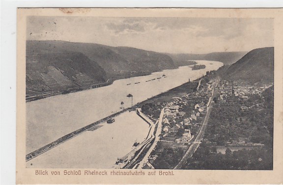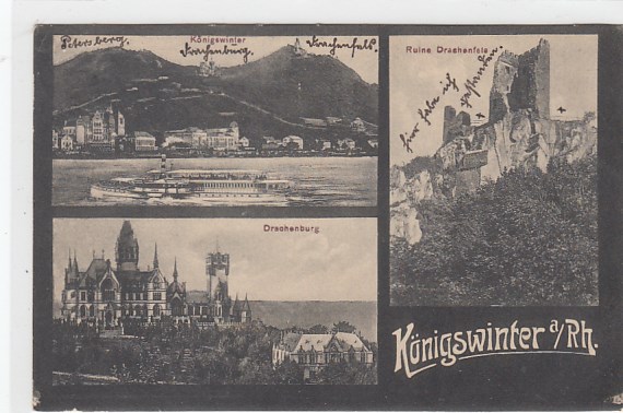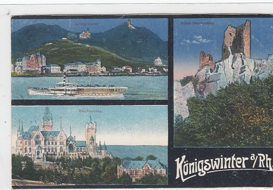 Königswinter am Rhein mit Drachenburg und Ruine Drachenfels 1916